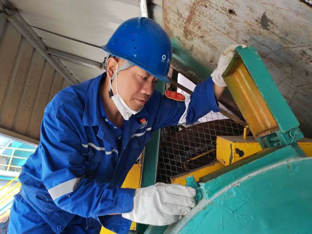 阿克蘇天山公司燒成車間,檢修工康文強正在排查設(shè)備故障。