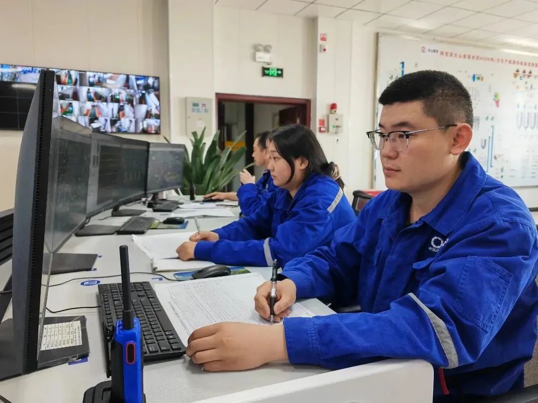 阿克蘇天山公司操作員呂立晨在監(jiān)測生料磨運行數(shù)據(jù)。