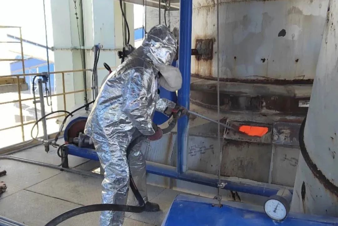 蒙欣巴音嘎拉有限責(zé)任公司員工正在預(yù)熱器清理煙室積料。