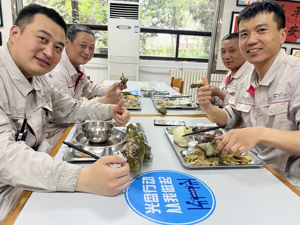 午餐時(shí)刻,濟(jì)寧中聯(lián)員工品嘗到團(tuán)員青年親手包的粽子