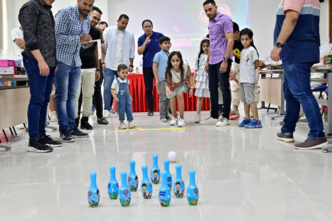 此外,家屬們參加公司準(zhǔn)備的親子活動(dòng),活動(dòng)內(nèi)容包括趣味保齡球、禮物套圈圈等,派駐中方員工子女與埃方員工子女同臺(tái)競技,趣味十足。之后孩子們又前往游樂園游玩了碰碰車、卡丁車、旋轉(zhuǎn)木馬、室內(nèi)障礙穿越等娛樂項(xiàng)目活動(dòng)。巨石埃及公司采購部經(jīng)理助理?xiàng)钛蟮膬鹤訔钭影?,在爸爸媽媽的陪伴下無比興奮:“我的爸爸是個(gè)大忙人,經(jīng)常不能陪我,今天他陪了我一整天,我很高興,而且我今天認(rèn)識(shí)了很多埃及的小朋友,我們一起玩了蕩秋千!”