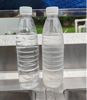 進(jìn)出水水樣對(duì)比,左圖為凈化后的水