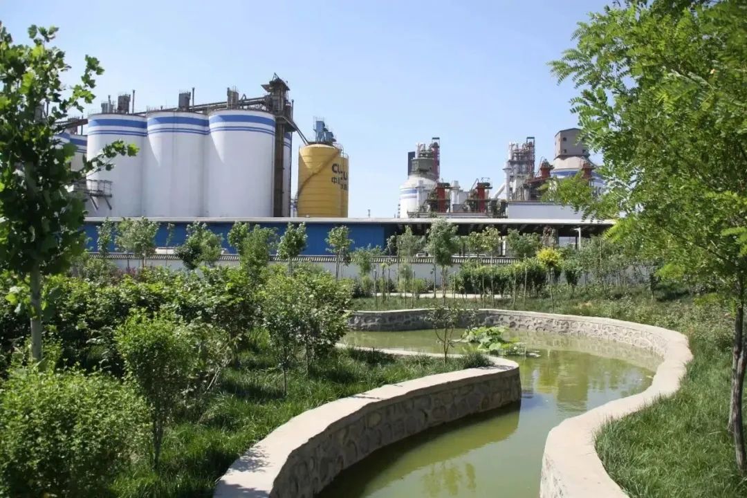 綠樹藍天與廠區(qū)的交相輝映