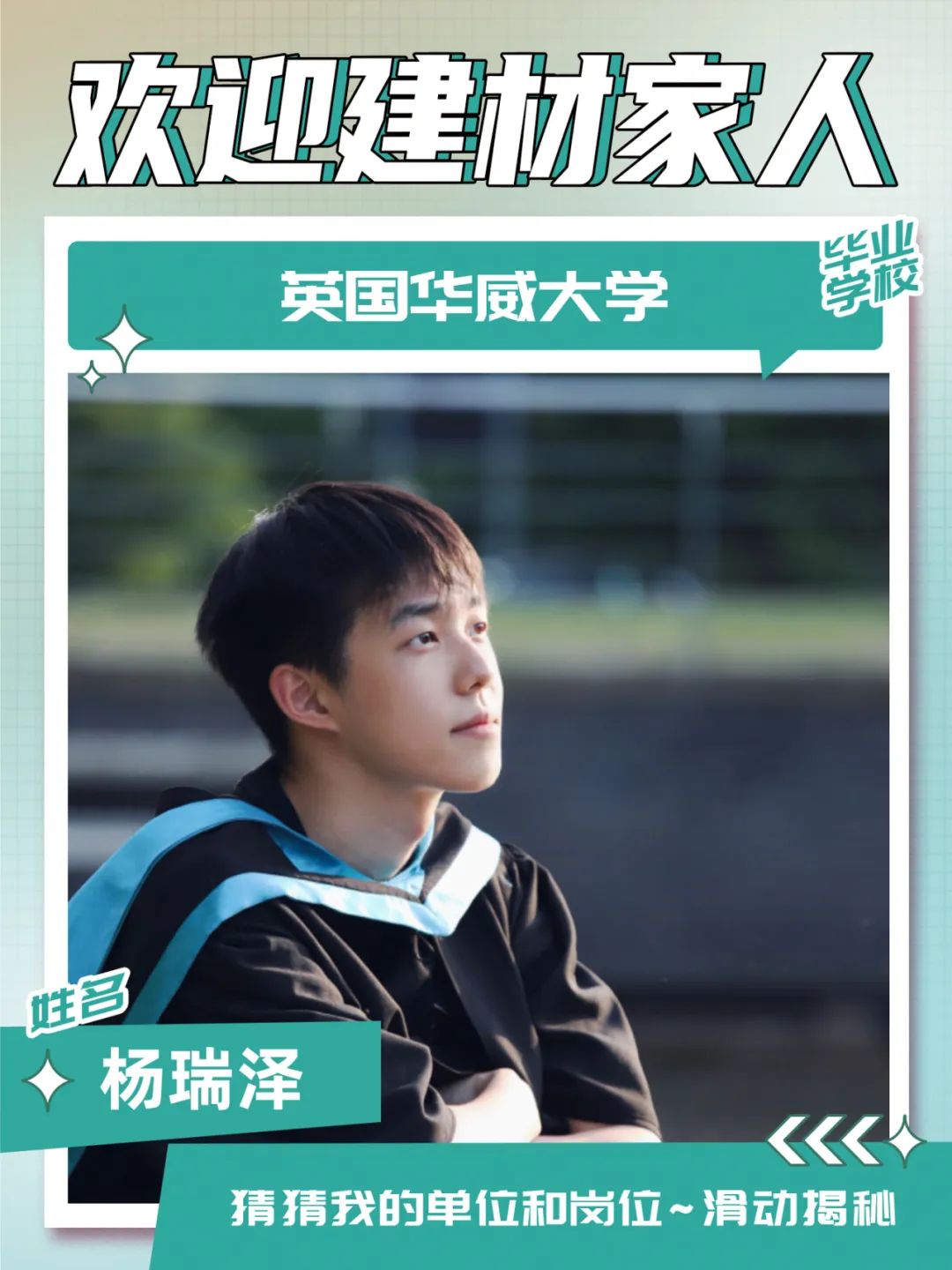 入職感言:我性格開朗,做事認(rèn)真,有責(zé)任心,喜歡運動、健身在接下來的工作中,我會以熱情、認(rèn)真的態(tài)度對待工作,踏實做好每一件事,不斷加強學(xué)習(xí),提升專業(yè)技能,虛心向前輩請教,努力為中建材投資這個大家庭貢獻自己的力量!未來可期