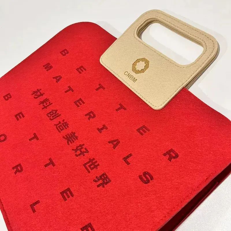 毛氈面料,立體版型,縫線工藝,堅(jiān)固耐用,簡約時(shí)尚,“材料創(chuàng)造美好世界”出門挎包不二之選。