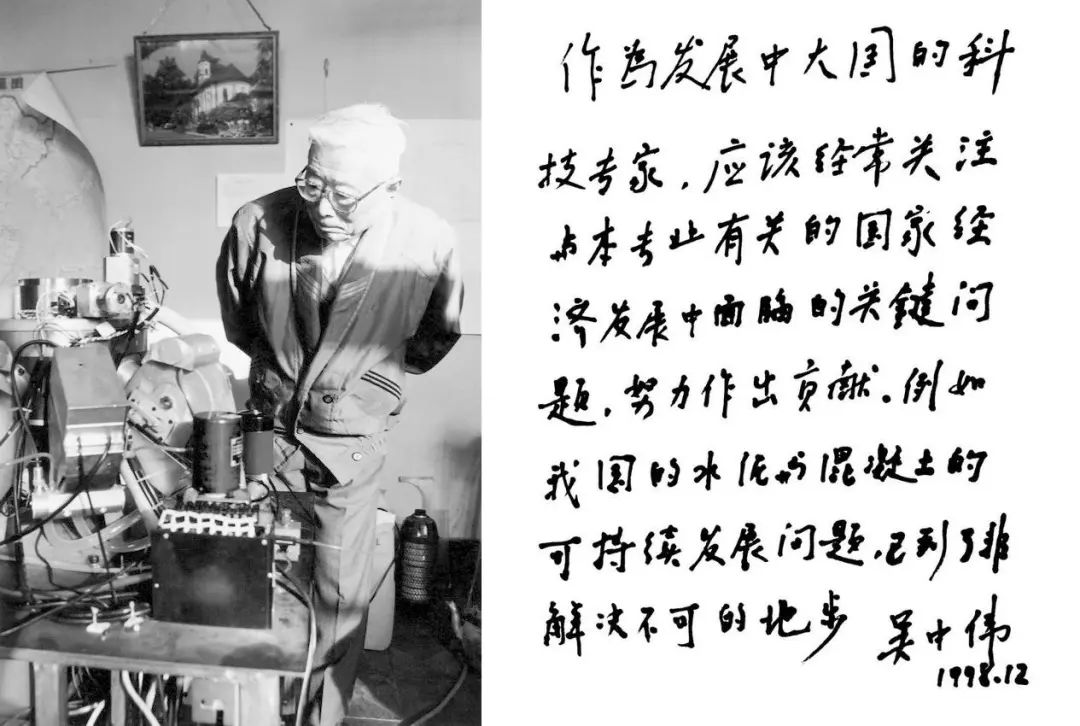 1959年,吳中偉首次發(fā)表“混凝土中心質(zhì)假說(shuō)”,開(kāi)創(chuàng)了通過(guò)亞微觀、微觀方法研究混凝土組分、結(jié)構(gòu)對(duì)性能影響之先河。這個(gè)被國(guó)際同行稱(chēng)為“中國(guó)學(xué)派”的理論,為后續(xù)高性能混凝土研究奠定了基礎(chǔ),至今仍在國(guó)際學(xué)術(shù)界熠熠生輝。晚年他仍筆耕不輟,1992年前瞻性提出“環(huán)保型膠凝材料”與“綠色高性能混凝土”新概念,推動(dòng)中國(guó)建材工業(yè)向可持續(xù)方向轉(zhuǎn)型,讓中國(guó)建筑有了更堅(jiān)韌的筋骨。