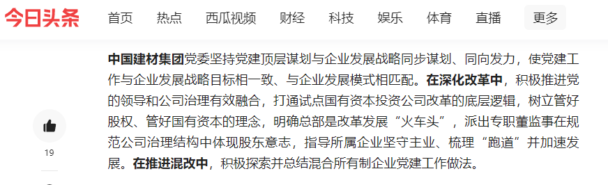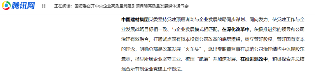 以高質(zhì)量黨建引領(lǐng)高質(zhì)量發(fā)展,中國(guó)建材入選典型案例,央視、人民日?qǐng)?bào)等媒體報(bào)道