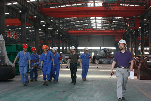2013年7月9日上午,在合肥中亞建材裝備有限責(zé)任公司車間內(nèi)成功舉辦了一場緊張、生動的“安全生產(chǎn)事故應(yīng)急救援演練”。公司總經(jīng)理鄧小林(安委會主任)、副總經(jīng)理屠威(安委會副主任)、生產(chǎn)部部長王國慶以及安質(zhì)部部長周飛等人參與了演練活動,合肥水泥研究設(shè)計院企管部部長許有濤、區(qū)經(jīng)貿(mào)局主任程呈等人在公司領(lǐng)導(dǎo)的陪同下觀摩、指導(dǎo)了本次演練活動。