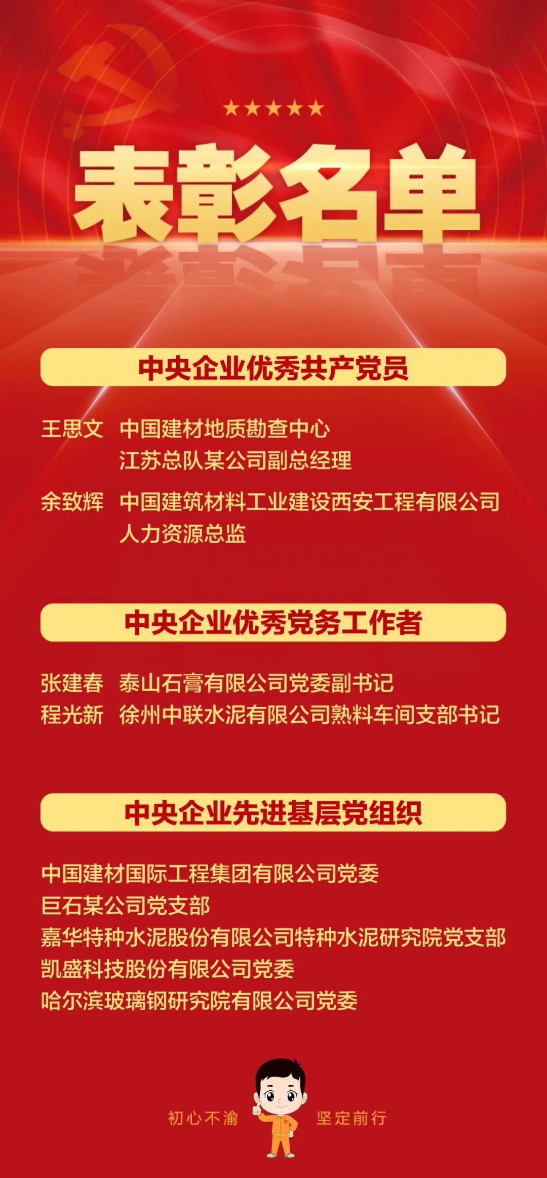 中國建材集團5名個人、5個集體榮獲中央企業(yè)“兩優(yōu)一先”表彰