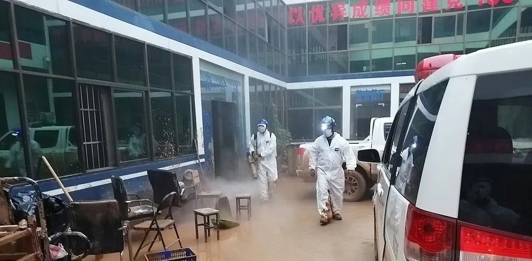 大災(zāi)之后,容易出現(xiàn)大疫。為了降低疫情發(fā)生風(fēng)險(xiǎn),身為共產(chǎn)黨員的季延毫不猶豫套上了又悶又厚的防護(hù)服,藍(lán)裝變白裝,對(duì)重點(diǎn)受災(zāi)區(qū)域開(kāi)展消殺工作。高溫、防護(hù)服、加之長(zhǎng)時(shí)間的工作使他們汗如雨下、體力不支,幾次差點(diǎn)因?yàn)閻灍岣邷貢灥乖谙麣F(xiàn)場(chǎng)。