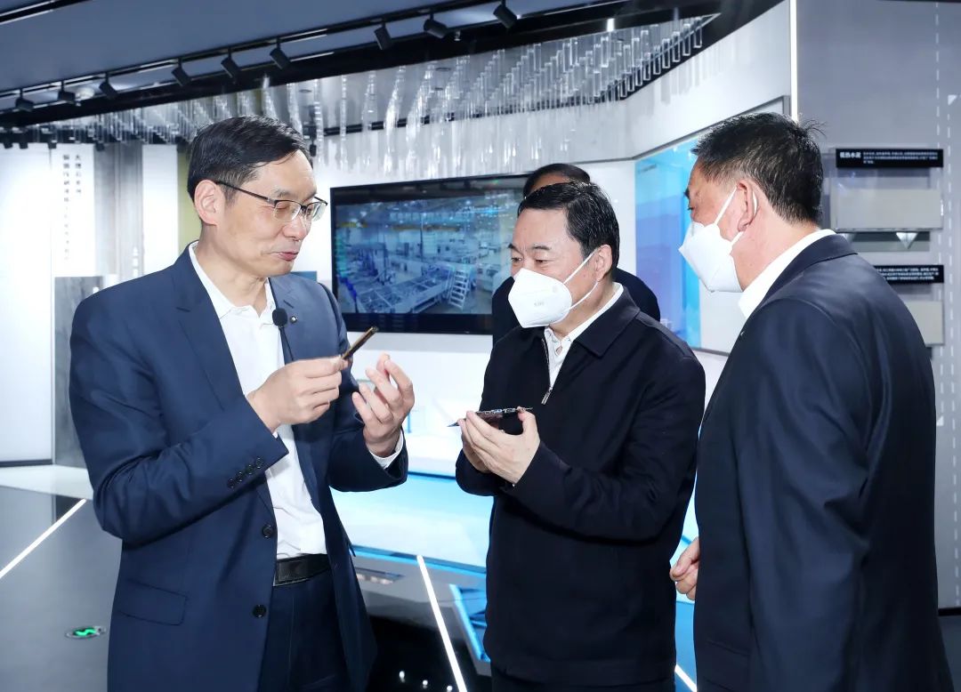5月17日,國資委黨委書記、主任郝鵬到中國建材集團調研,周育先介紹新材料“低介電玻纖布”電子產(chǎn)品