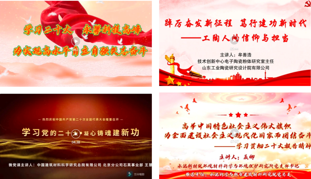 中國(guó)建材總院組織各級(jí)黨組織書(shū)記、黨員干部開(kāi)展黨課教育,引導(dǎo)廣大干部職工進(jìn)一步強(qiáng)化理論武裝、筑牢思想根基,進(jìn)一步領(lǐng)會(huì)精神實(shí)質(zhì)、把握核心要義。瑞泰科技、國(guó)檢集團(tuán)、中材高新、西安墻材院、咸陽(yáng)陶瓷院、總院北分、中巖科技、水泥新材院主講人分別講授了黨課,緊緊圍繞貫徹落實(shí)黨的二十大精神,全面回顧了歷史進(jìn)程和新時(shí)代的偉大變革,解析未來(lái)一段時(shí)期黨和國(guó)家事業(yè)發(fā)展的目標(biāo)任務(wù)和大政方針,并結(jié)合企業(yè)發(fā)展與自身工作,深入解讀黨建工作為企業(yè)持續(xù)健康發(fā)展提供堅(jiān)強(qiáng)政治保證和組織保證。一堂堂生動(dòng)的黨課帶領(lǐng)大家鍛造“初心”,增強(qiáng)作為新時(shí)代青年人的歷史使命感和責(zé)任感。