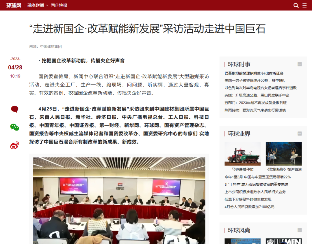 “走進(jìn)新國企·改革賦能新發(fā)展”采訪活動走進(jìn)中國巨石
