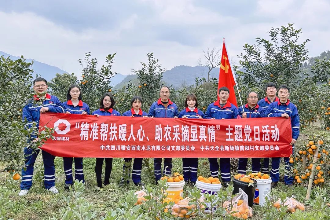 四川雅安西南水泥黨支部組織黨員到天全縣新場(chǎng)鎮(zhèn)前陽(yáng)村開展“精準(zhǔn)幫扶暖人心 助農(nóng)采摘顯真情”主題黨日活動(dòng),幫助當(dāng)?shù)卮迕癫烧S果柑1000余斤。