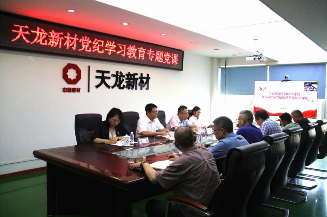 中建材資產(chǎn)管理公司黨委書記、總經(jīng)理馮瑋以《全面加強(qiáng)黨的紀(jì)律建設(shè) 為公司改革發(fā)展提供堅(jiān)強(qiáng)紀(jì)律保障》為主題,為成員企業(yè)天龍新材全體黨員干部講專題黨課。在黨課中強(qiáng)調(diào),天龍新材作為生產(chǎn)制造型企業(yè),在人事任免、物資采購、招投標(biāo)等重點(diǎn)領(lǐng)域關(guān)鍵環(huán)節(jié)應(yīng)突出紀(jì)律意識(shí),要以黨紀(jì)學(xué)習(xí)教育為契機(jī),全面準(zhǔn)確掌握“六項(xiàng)紀(jì)律”的核心要求,不斷增強(qiáng)遵守紀(jì)律規(guī)矩的行動(dòng)自覺。領(lǐng)導(dǎo)干部要發(fā)揮“頭雁效應(yīng)”,在遵規(guī)守紀(jì)和擔(dān)當(dāng)作為上走在前、作表率,真正讓紀(jì)律嚴(yán)起來、把規(guī)矩立起來,帶動(dòng)全公司上下形成建功新時(shí)代、爭(zhēng)創(chuàng)新業(yè)績(jī)的生動(dòng)局面。天龍新材全體黨員、資產(chǎn)公司黨員代表、全體團(tuán)員參加黨課學(xué)習(xí)。